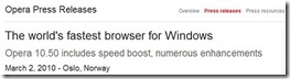 In regards to my post Opera please compete, not complain I was a harsh on Opera and suggested they just get on with adding useful features and function. Since then I have been watching them with little hope until I saw this post Opera 10.5 pre-alpha for Labs. This comes with a host of new features including a super fast JavaScript engine Carakan and Windows 7/Vista platform integration. If Opera 10.5, if lives up these promises, there is no reason it should not be the most used browser.