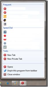 I therefore went and manually updated at work, but was not so happy with the release yet for home. Sometime early April it began prompting to update at home and I did. I can see why the staged release was done. To me it still has some stability issues not seen in the previous version. On Windows 7 however, I now enjoy Opera with Aero Glass, as well as Aero Peek and Jump Lists. Now, you can easily access your Speed Dials, tabs and more from the Taskbar. And it is faster than ever. So well worth the update. Well done to the Opera team.