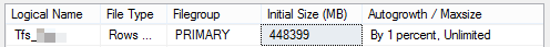 Update 22 Apr 2014: Over the long weekend, it has done exactly the same thing. Another 60 GB expanded to. I’m not going to shrink this time. There is now 54 server workspaces for TFS Service, only 3 more than 11 days ago, so nothing extreme there. The growth of the Data in the tbl_Content from the 7th April has gone from 282,901,304 KB to 301,318,640 KB; 17.5 Gigabytes. Taking out weekends and public holidays that is almost 2 GB a day.