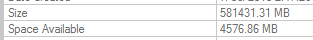 Update 4 April 2014: Something has happened overnight. I’m assuming the workspace clean has caused it. We now have 115 GB space available! What’s odd though is that the tbl_Content size has dropped that space. What does that table have to do with workspaces? Some insights into how this is working so we can manage our systems would be appreciated.